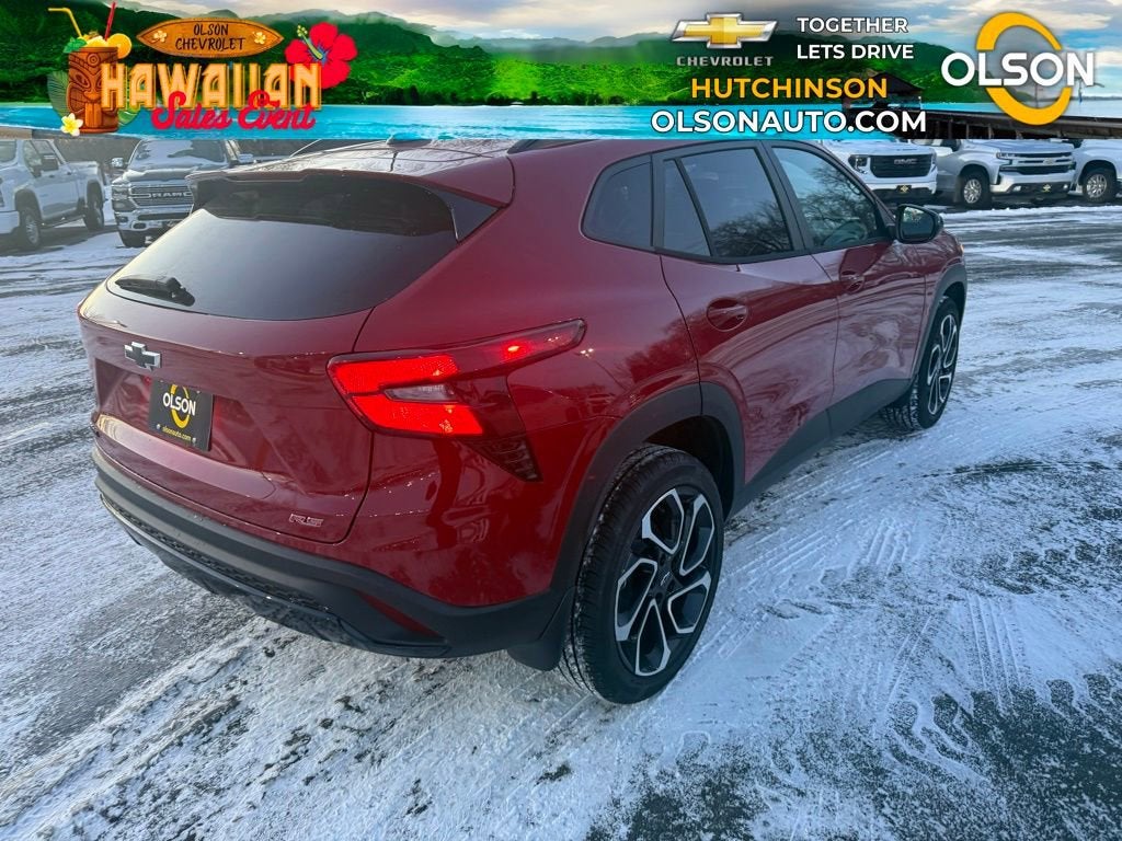 Olson Chevrolet is Family owned and operated In Hutchinson and Redwood Falls. Our business actively participates in the community through Community Events and Sponsorships. We enjoy Collaborating with and supporting local businesses. Olson Chevrolet is pumped up to offer this 2026 Chevrolet Trax 2RS in Apex Red with a Jet Black With Red Accents interior. This Trax is powered by a Flex Fuel 1.2 liter 3 cylinder engine with FWD and Automatic transmission.
